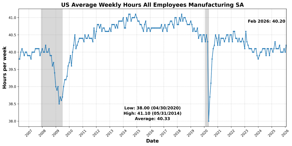 These gains were outweighed by declines across several key areas. The Conference Board US Leading Index Stock Prices 500 Common Stocks fell 0.6 percent, and the University of Michigan Consumer Expectations Index declined 0.7 percent. The Inventory-to-Sales Ratio Total Business dropped 1.5 percent, and Debit Balances in Customers’ Securities Margin Accounts decreased 2.0 percent. United States Heavy Truck Sales SAAR fell 3.3 percent, while US New Privately Owned Housing Units Started by Structure Total SAAR declined 3.4 percent. US Average Weekly Hours All Employees Manufacturing SA was unchanged.