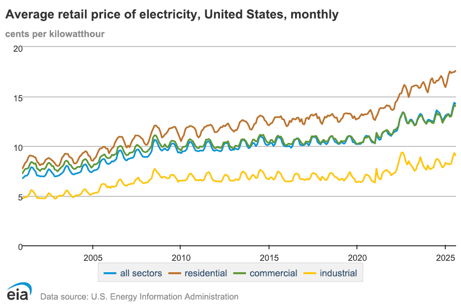 America is on the cusp of the most power-hungry decade in a generation. Federal forecasters expect record electricity demand in 2025–26, even as oil producers are carefully managing output. Yet the main reason your bill is climbing isn’t just regional differences, it’s rules. A thicket of tariffs on essential hardware, marathon permitting timelines, and clogged grid interconnection queues layer a “policy premium” onto every kilowatt-hour. In a textbook supply-and-demand sense, demand is racing ahead, driven by AI data centers and electrification, while policy squeezes supply. Worse, Washington keeps “choosing” technologies, inviting regulatory capture and raising costs for everyone. If we want the AI era to benefit households instead of draining their wallets, we need neutral, pro-entry rules that let the cheapest reliable electrons win.